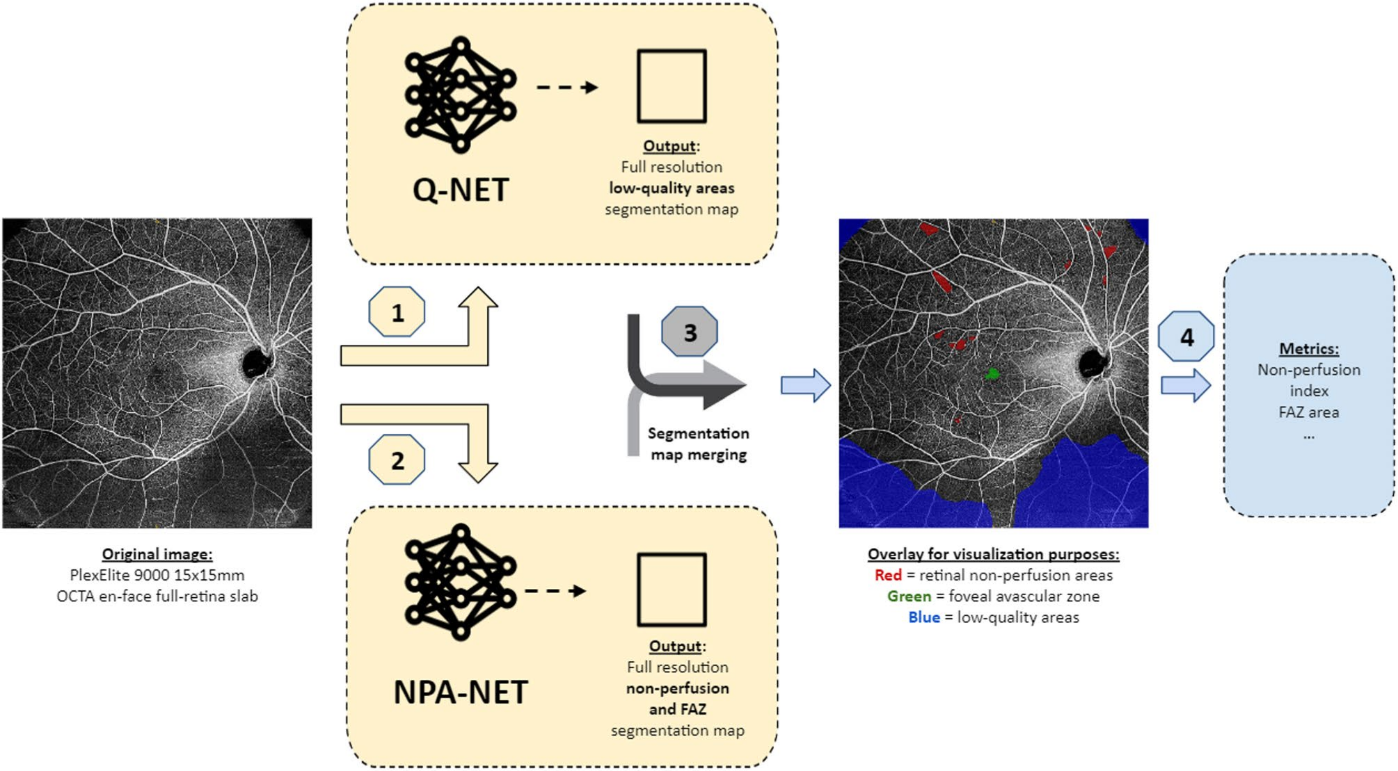 Secondary choroidal neovascularization (CNV) represents the major cause of vision loss in idiopathic MFC and PIC. This study assessed potential biomarkers on OCT to predict the development of CNV using an artificial intelligence (AI)- based software.